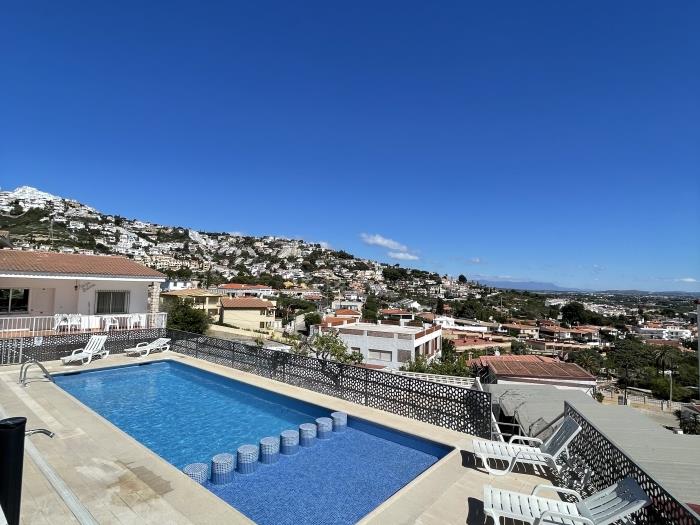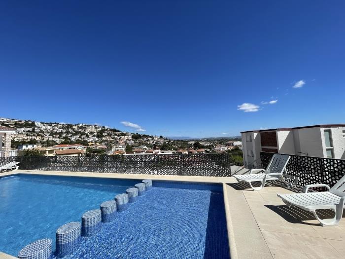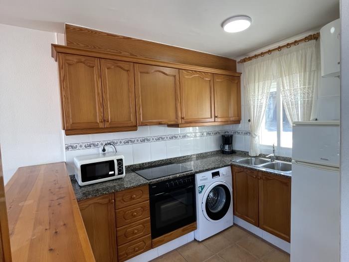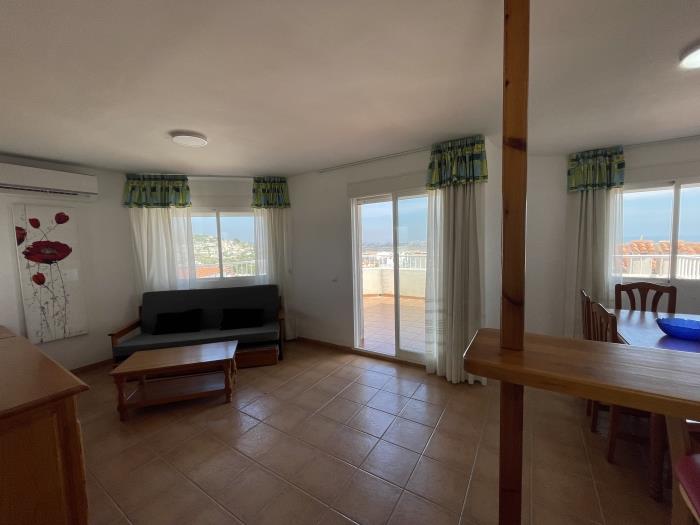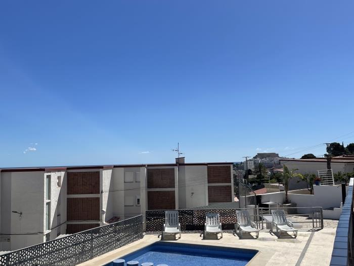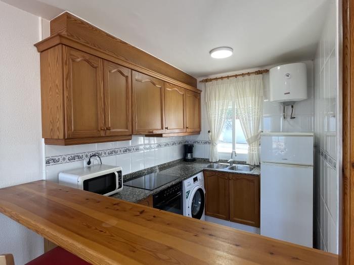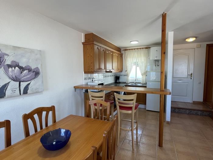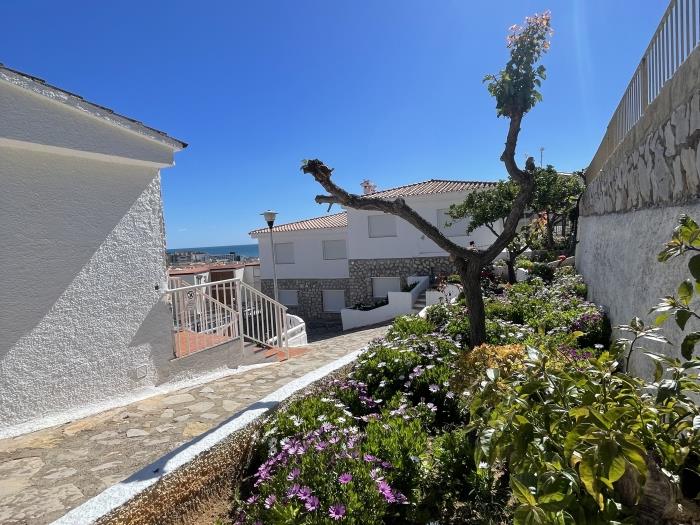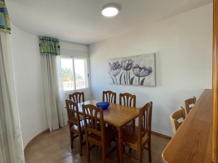 Set of apartments of different types Duplex apartments on the ground and first floors, accessed via the first floor. On the first floor: Living-dining room with double sofa bed, American kitchen bar, toilet and terrace. Ground floor: 2 double bedrooms (one with a double bed and the other with two single beds), full bathroom, terrace. All with washing machine, TV and Wi-Fi. Air conditioning for a fee, €10/day,