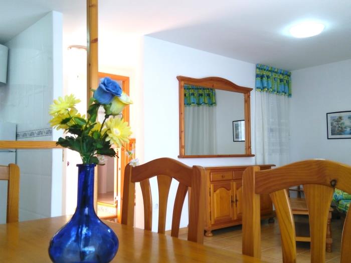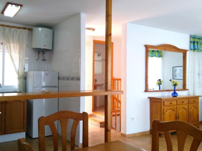 Apartment with capacity for up to 6 people, with 2 bedrooms, living room with sofa bed and equipped kitchen. Entire apartment on two floors connected by a staircase.