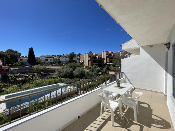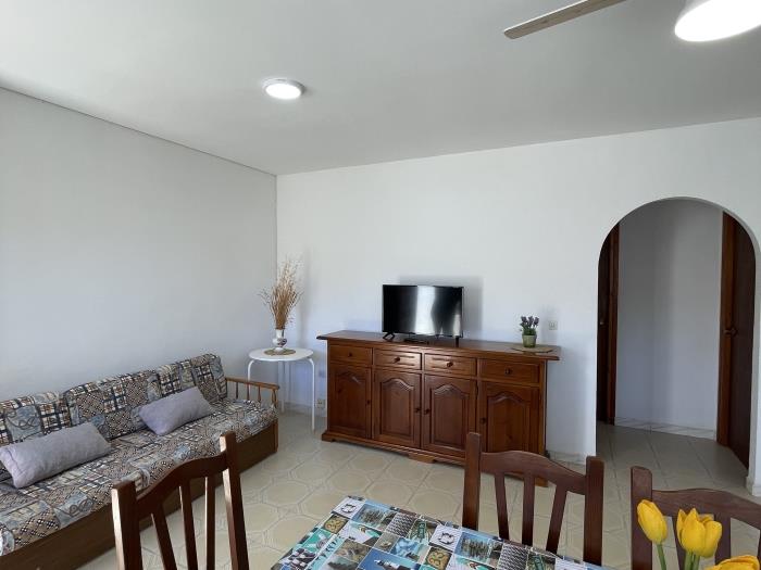 Set of apartments located on the ground floor or first floor (without elevator), consisting of two bedrooms with capacity for up to 6 people. Composed of a living-dining room with sofa bed, kitchen, bathroom, two bedrooms (one with a double bed and the other with two single beds), terrace and communal pool (seasonal). The apartment has parking included, but does not include sheets or towels (they can be rented at reception), does NOT allow pets, does not have Wi-Fi or air conditioning.