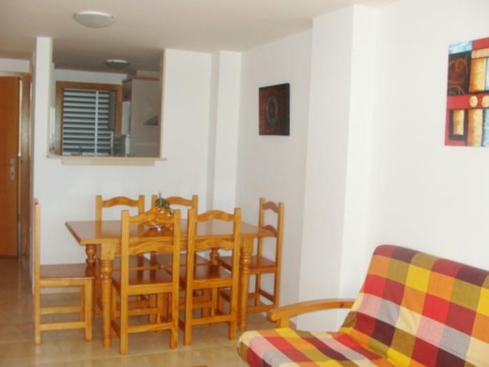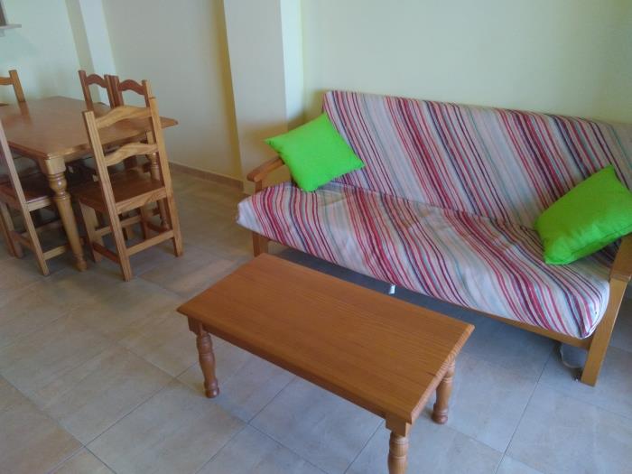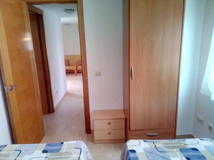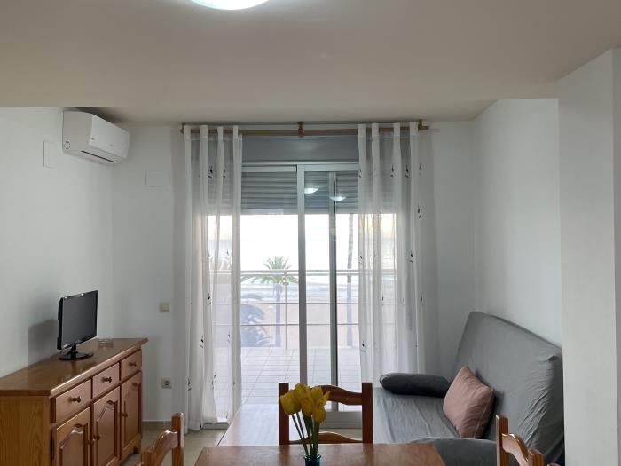 Apartment block consisting of a living room with a sofa bed, 2 double bedrooms (one with a double bed and the other with two single beds), a full bathroom, a kitchen with a ceramic hob, oven and microwave, a washing machine, large terraces, some with frontal or lateral views of the sea and others with slight lateral views of the sea. All with TV, Wi-Fi and air conditioning (for a fee).