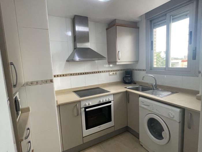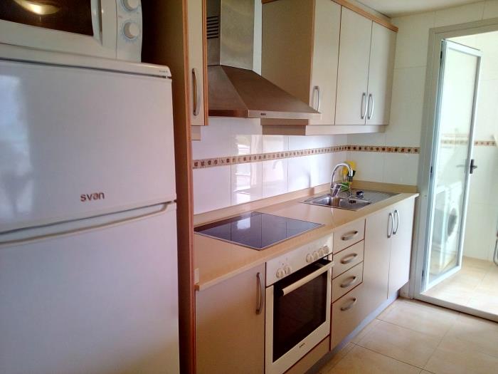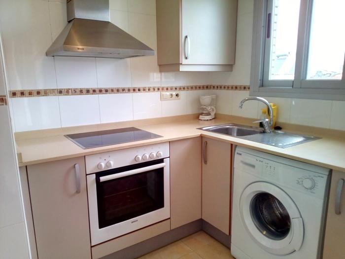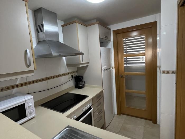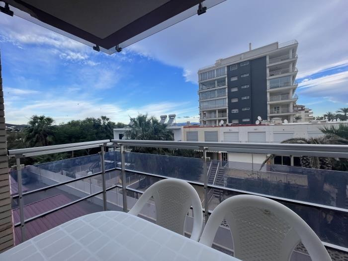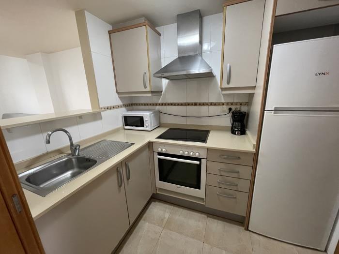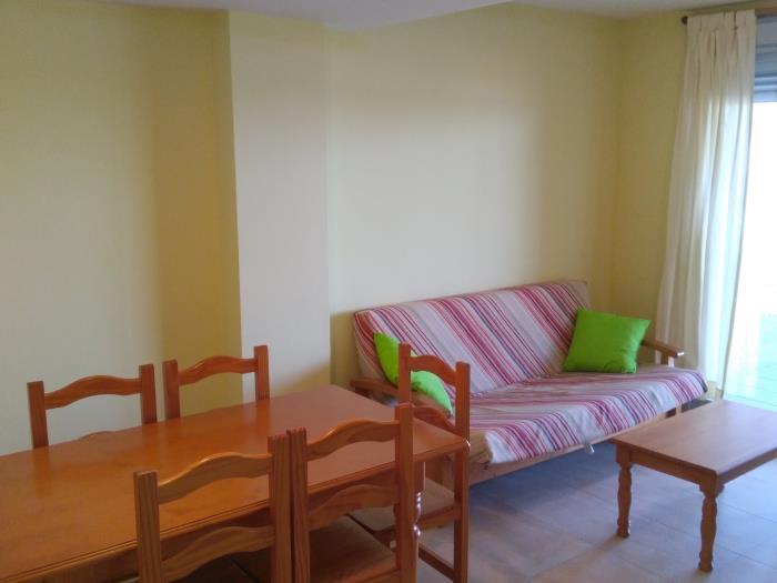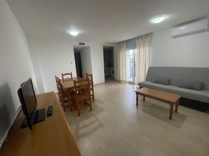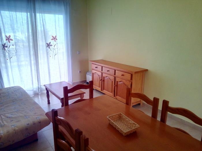 Apartment block consisting of a living room with a sofa bed, 2 double bedrooms (one with a double bed and the other with two single beds), a full bathroom, a kitchen with a ceramic hob, oven and microwave, a washing machine, large terraces, some with frontal or lateral views of the sea and others with slight lateral views of the sea. All with TV, Wi-Fi and air conditioning (for a fee).