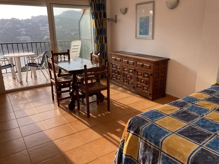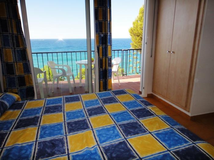Comfortable apartments for four people, have a bedroom with two single beds and a double sofa bed, with a bathroom with full shower, kitchen type, can include bed linen service, cot and internet access for a additional price per day. They have a garden and a large communal swimming pool for adults and children. From the terrace you can enjoy magnificent views on the sea. Surrounded by a very beautiful and relaxing natural environment. Calm and family atmosphere. Covered parking included in the price. 50 meters from beautiful beaches and coves. Ideal couples or families.