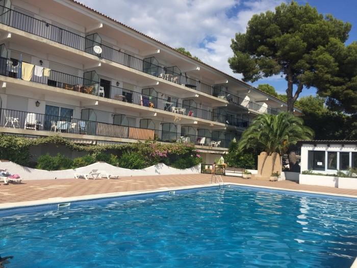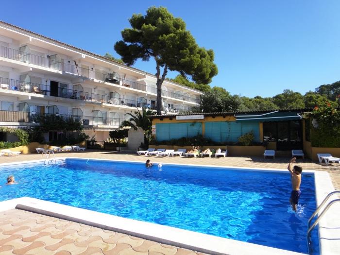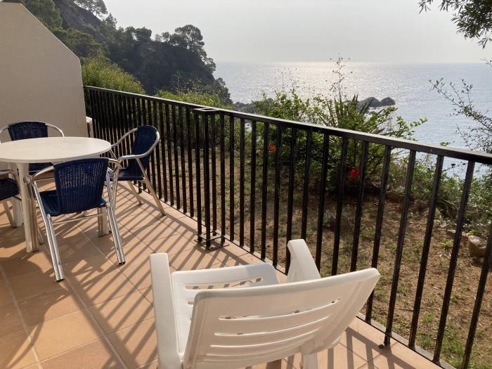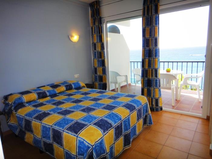 Comfortable apartments for four people, have a bedroom with two single beds and a double sofa bed, with a bathroom with full shower, kitchen type, can include bed linen service, cot and internet access for a additional price per day. They have a garden and a large communal swimming pool for adults and children. From the terrace you can enjoy magnificent views on the sea. Surrounded by a very beautiful and relaxing natural environment. Calm and family atmosphere. Covered parking included in the price. 50 meters from beautiful beaches and coves. Ideal couples or families.