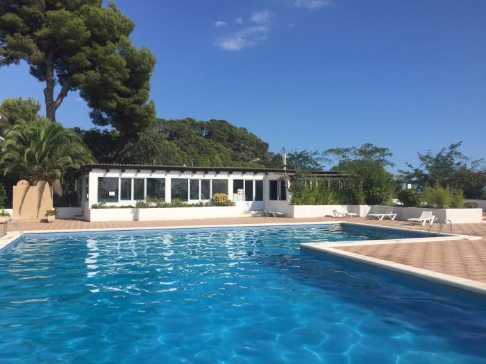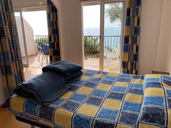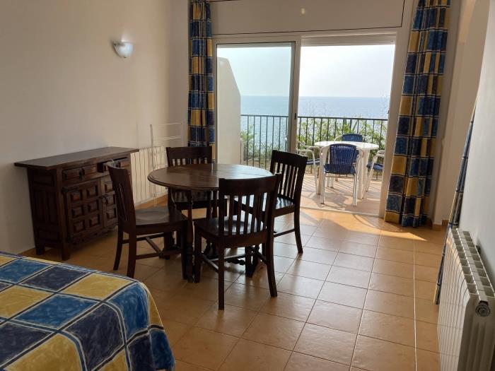 Comfortable apartments for four people, have a bedroom with two single beds and a double sofa bed, with a bathroom with full shower, kitchen type, can include bed linen service, cot and internet access for a additional price per day. They have a garden and a large communal swimming pool for adults and children. From the terrace you can enjoy magnificent views on the sea. Surrounded by a very beautiful and relaxing natural environment. Calm and family atmosphere. Covered parking included in the price. 50 meters from beautiful beaches and coves. Ideal couples or families.