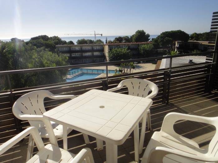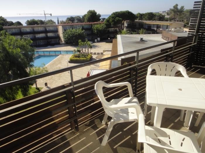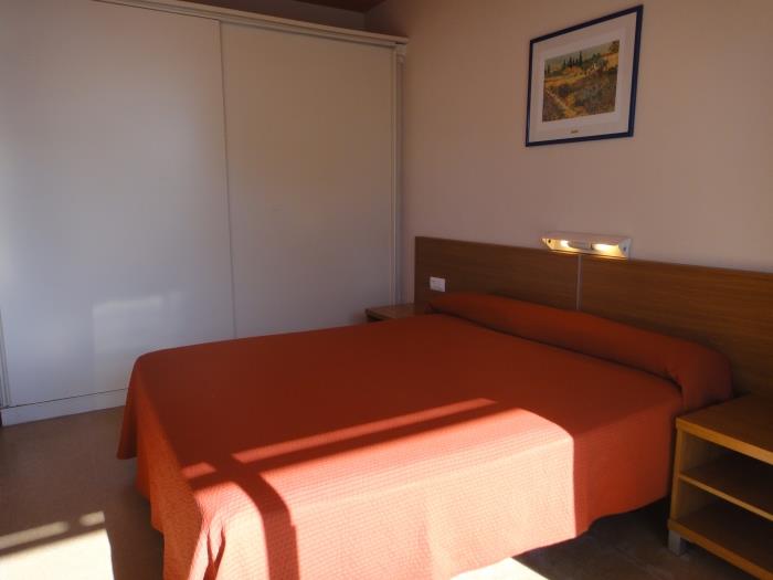 Comfortable and modern apartments with air conditioning for six people. Distributed in two rooms one with double bed and the other with two single beds and a double sofa bed, kitchenette-type kitchen. They have a full bathroom with a bathtub. They have a large terrace with pool views.