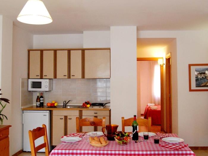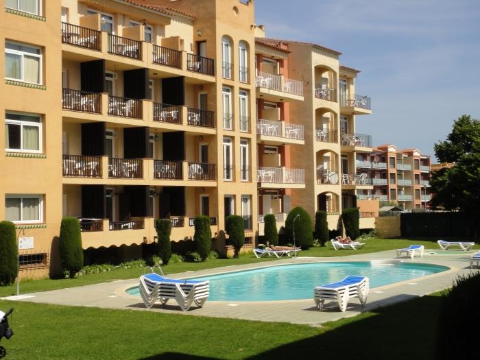 Comfortable apartments with air conditioning for four people. Distributed in a room with two single beds and two single sofa beds. They have a bathroom with full shower. Equipped kitchen Surrounded by a large garden with several community pools, both for adults and children. They also have a children's area. From the terrace you can enjoy beautiful views of the garden. Wifi included. Possibility of parking. Downtown and only 150 meters from the beach. Exclusive restaurant and minigolf for the clients. Reception. All kinds of services in the environment. Very quiet and residential environment. Ideal for families.