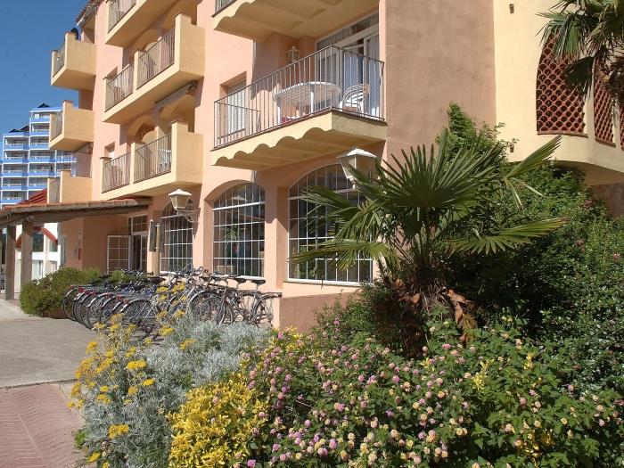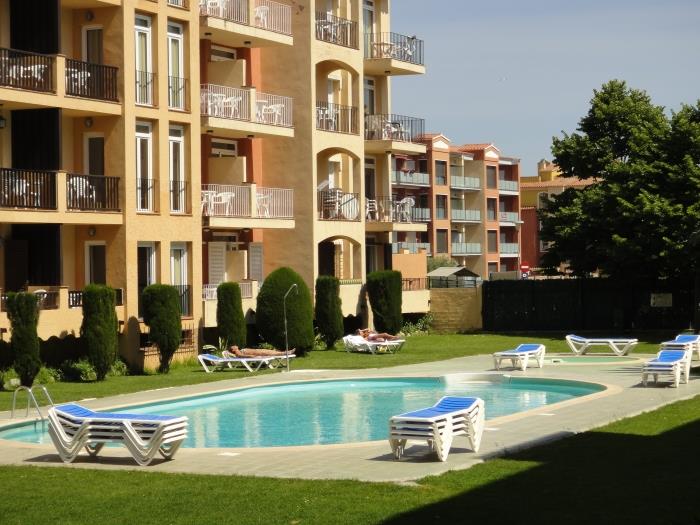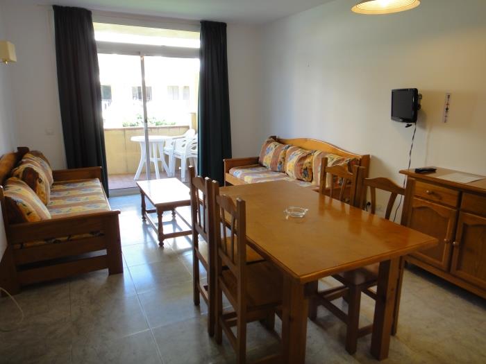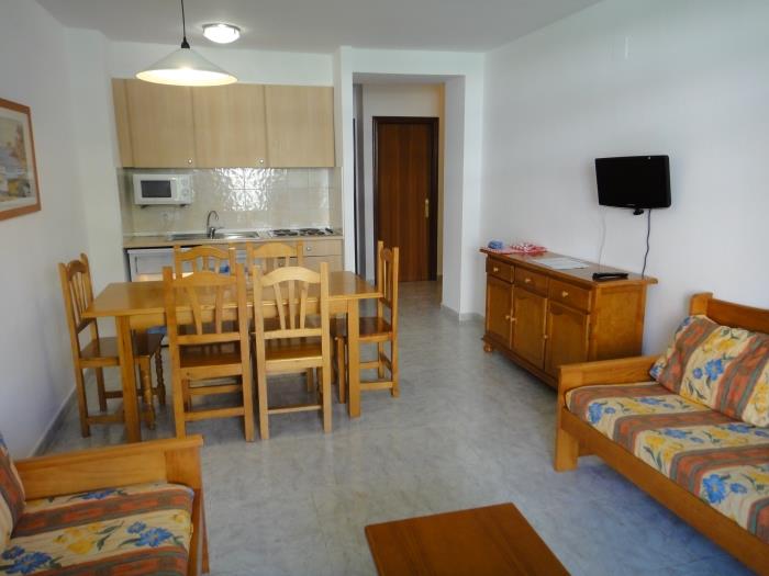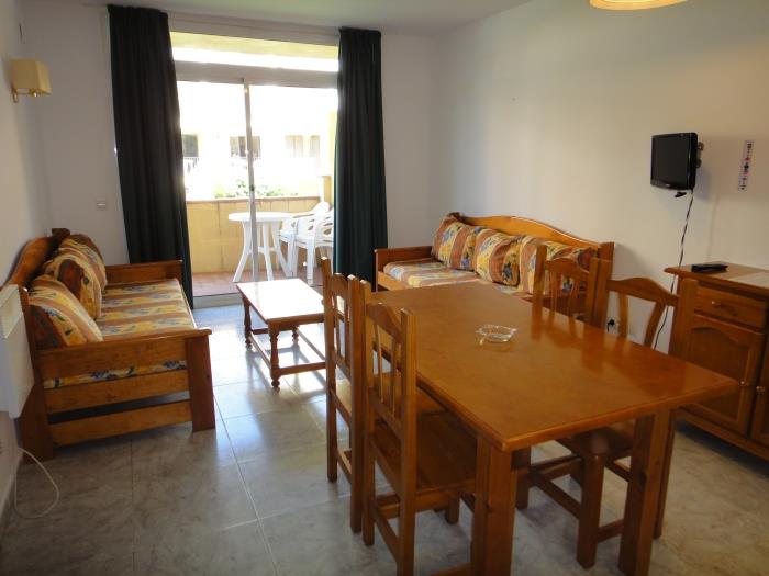 Comfortable apartments with air conditioning for six people. Distributed in two rooms with two single beds each and with two single sofa beds. They have a bathroom with full bath. Equipped kitchen Surrounded by a large garden with several community pools, both for adults and children. They also have a children's area. From the terrace you can enjoy beautiful views of the garden. Wifi included. Possibility of parking. Downtown and only 150 meters from the beach. Exclusive restaurant and minigolf for the clients. Reception. All kinds of services in the environment. Very quiet and residential environment. Ideal for families.