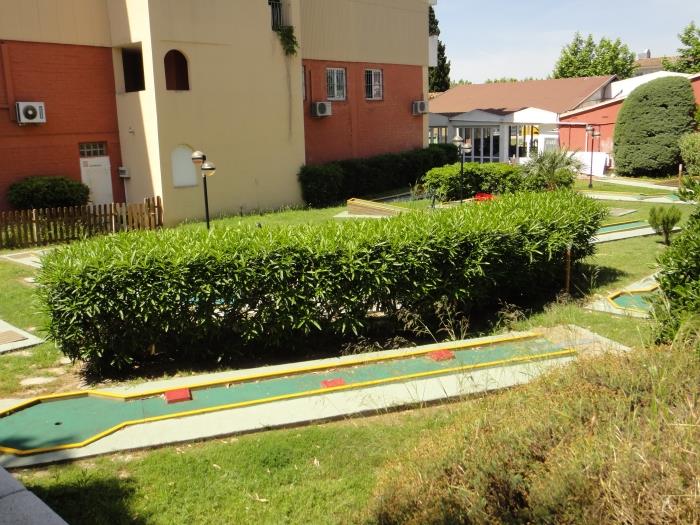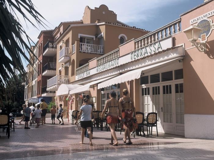 Comfortable apartments with air conditioning for six people. Distributed in two rooms with two single beds each and with two single sofa beds. They have a bathroom with full bath. Equipped kitchen Surrounded by a large garden with several community pools, both for adults and children. They also have a children's area. From the terrace you can enjoy beautiful views of the garden. Wifi included. Possibility of parking. Downtown and only 150 meters from the beach. Exclusive restaurant and minigolf for the clients. Reception. All kinds of services in the environment. Very quiet and residential environment. Ideal for families.