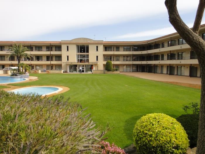 Apartments for 4 people with terrace with beautiful views to the pool and the garden. They have lift and possibility of parking. They have a double sofa bed and two single beds. They have a full bathroom with a bathtub. Possibility of paying at the reception for towels and bedding. They have an equipped kitchen and crockery. They have satellite television and internet. They have all the amenities. The beach is very close to 800m, also have a golf course at 50m. They have a beautiful pool for adults and children. They also have a garden and a children's area. Very quiet and green area. Ideal families, people who enjoy golf and outdoor activities. Also for people interested in enjoying the beach.