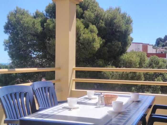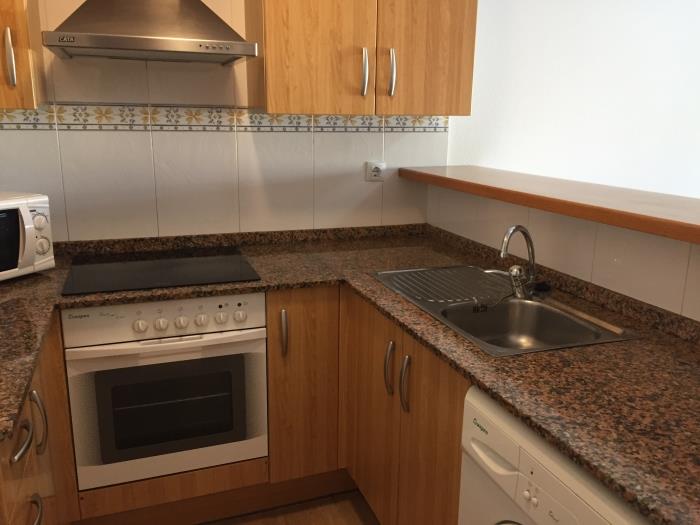 Apartment property. They have a dining-living room with a double sofa bed, 2 double bedrooms, a kitchen with a washing machine, a full bathroom and a terrace. TV.