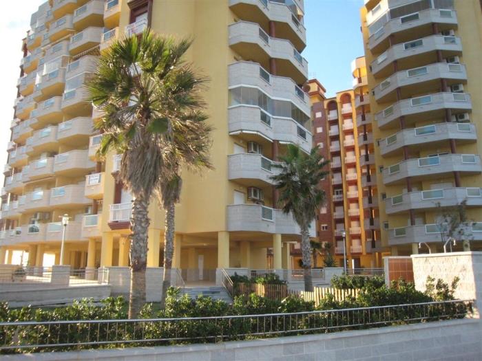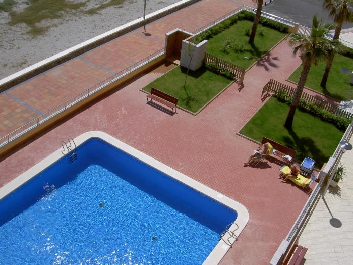 Apartments for five people with terrace and sea views. Distributed in two rooms one with a double bed and the other with two single beds and on a single sofa bed. They have a full bathroom with bathtub and a toilet. All comforts: Elevator, air conditioning throughout the apartment, heating, possibility of parking. Fully equipped kitchen. Possibility to include towels and bedding. In the common areas there is a swimming pool for adults and children, and a garden. Apartments on the beachfront. With all kinds of services around. In a very quiet and relaxed environment. The best option to discover the environment of La Manga del Mar Menor and at the same time enjoy the relax of the holidays. Pets are allowed. Ideal families, people interested in enjoying the beach.